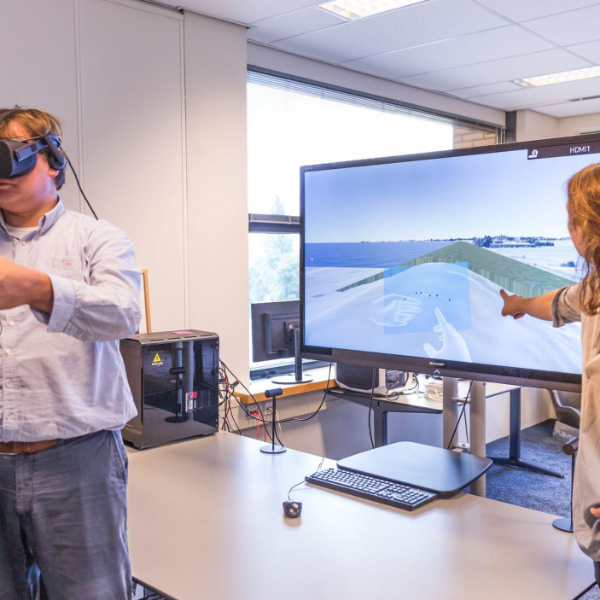 Marinus Aalberts came up with the idea for VR-Dijken when noticed that his work practices were changing: when designing dikes he was increasingly collaborating with people with different backgrounds. Think of landscape architects, ecologists and permit authorities, for example. These people are involved in the design but they generally do not have the right knowledge. However, if they work with VR-Dijken they can immediately see how their choices will affect other aspects of the design. Local residents, too, can use VR-Dijken to literally stand in their own back yards and instantly see what effect a new dike design will have on their lines of sight, for example.