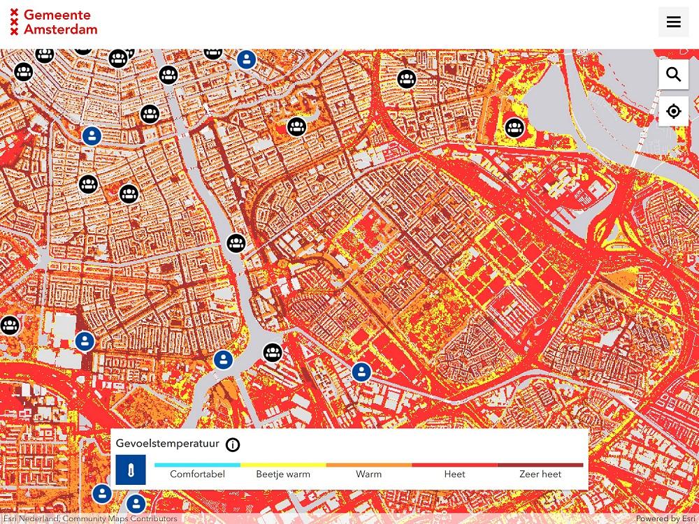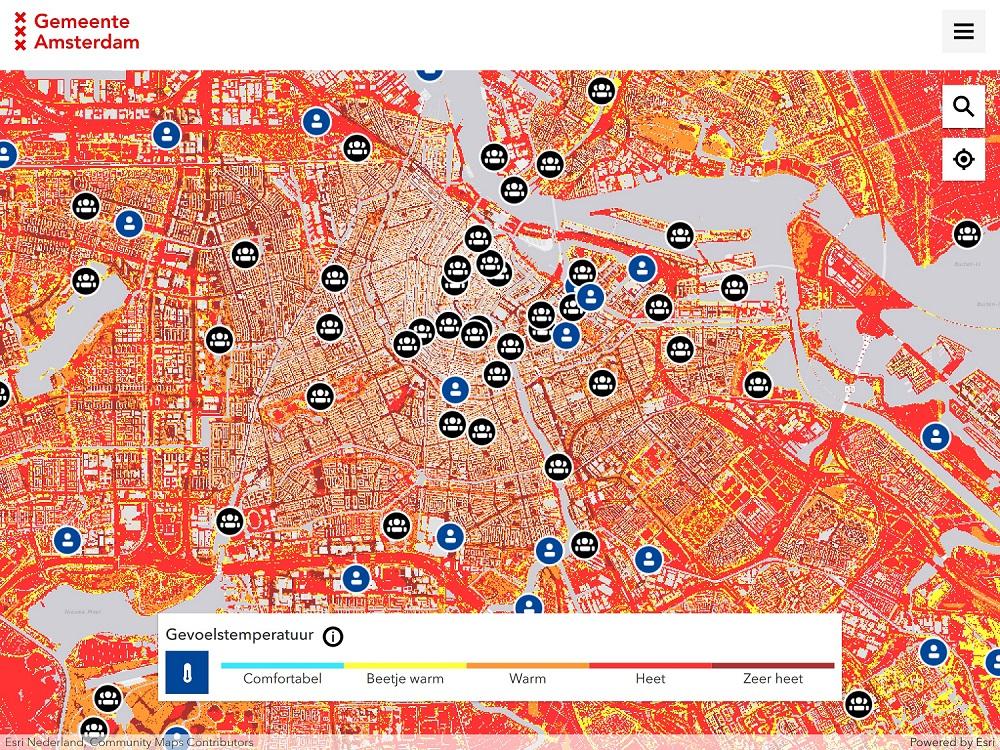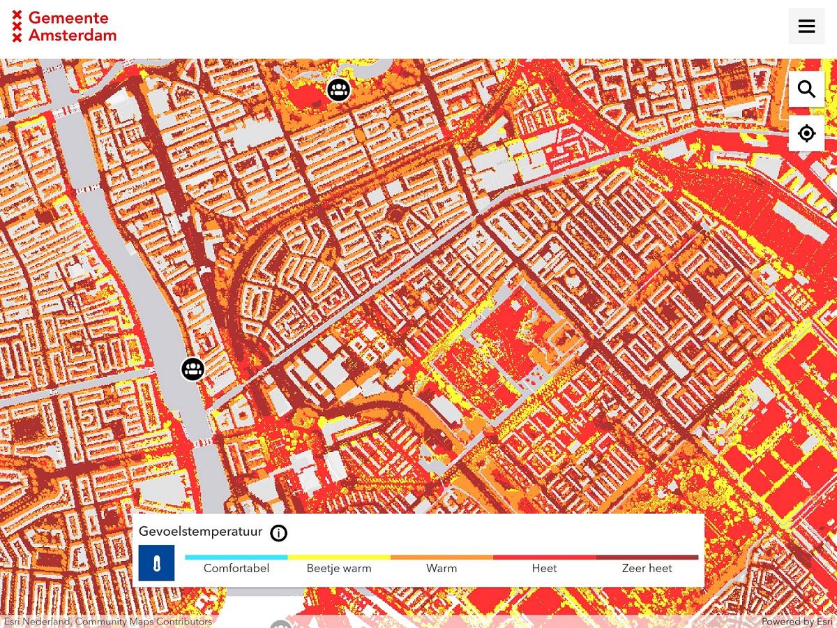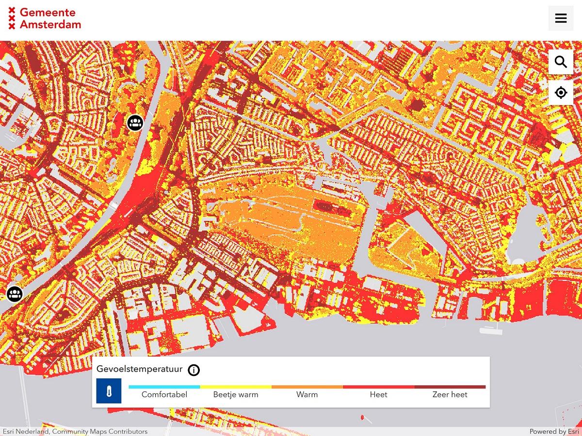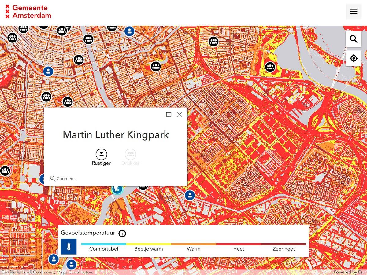 Did you know that it can be 2 degrees cooler in the Amsterdamse Bos - Amsterdam Forest than in the rest of the city? Many people obviously know where to find the popular cool spots. On the hottest days, however, the map shows that every neighbourhood has its own cool spots - although we realise that it is hot everywhere now. The map also shows where it has been relatively quiet or busy in recent weeks. This means you can find a cool(er) and quiet place in the city.