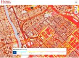 On this map, we record the apparent temperature. This is different to the actual air temperature. The air temperature is measured in a weather station. The apparent temperature indicates how people perceive the temperature in a certain weather situation. In some places, that temperature can soar. If the measured air temperature is 30ºC, in the sun and out of the wind it might feel more like 40ºC. As a built-up area with a relative lack of green spaces, the city heats up more than other areas.