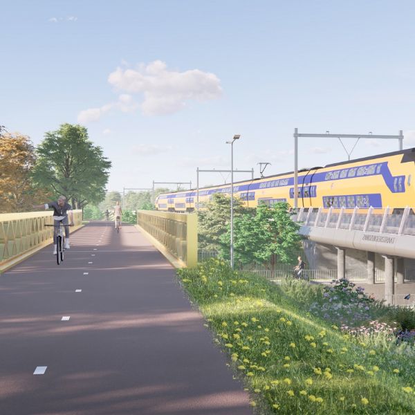 To encourage greater use of bicycles, safe and comfortable cycling routes are indispensable. The municipality of ’s-Hertogenbosch, together with its partners, is therefore realising an express cycling route, connecting Zaltbommel NS station and ’s-Hertogenbosch Central Station. Part of this express cycling route, between Ertveldweg and the Dieze river, includes a bicycle viaduct over Zandzuigerstraat. Together with wUrck, Witteveen+Bos was awarded the design assignment in July 2023 to design an integrated bicycle viaduct.
