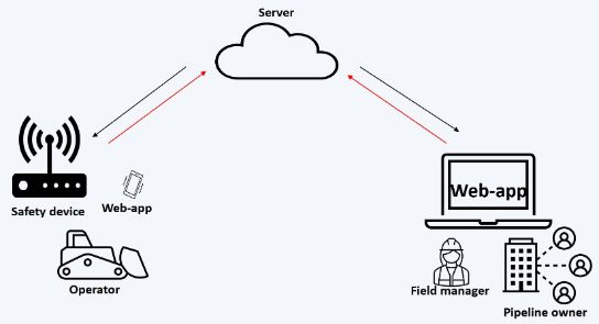 De machinist voorziet de graafmachine van een GeoSaFence-apparaat en voert in de GeoSaFence-app in welk type graafmachine er wordt gebruikt. Vervolgens wordt het systeem geactiveerd en wordt het graafwerk gestart. GeoSaFence waarschuwt de machinist door middel van een audiosignaal en een seintje via de app, als er in de buurt van een hogedrukleiding een graafactiviteit wordt uitgevoerd. Ook gaat er een seintje naar de beheerder van die leiding, zodat deze extra alert is op de werkzaamheden.