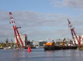 De grond onder de nieuw aangebrachte vloerconstructie van het station is weggegraven en de oude houten palen zijn verwijderd. Nadat de sleuf onder het station was verbonden met de ‘sluiskuip’ in het IJ, is het tunnelelement in de sleuf onder CS gevaren en afgezonken. Het waterpeil in het IJ is hiervoor tijdelijk verlaagd.