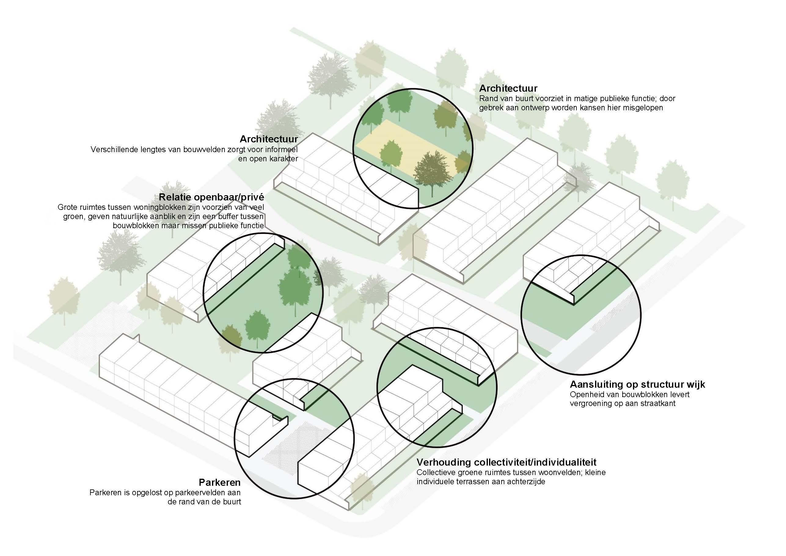 Schiedam is op twee schaalniveaus geanalyseerd. Elke wijk van de stad is individueel onder de loep genomen. Aanvullend op de wijkanalyse zijn ook de bovenwijkse structuren in kaart gebracht, bijvoorbeeld de logistieke aders en de natuur.