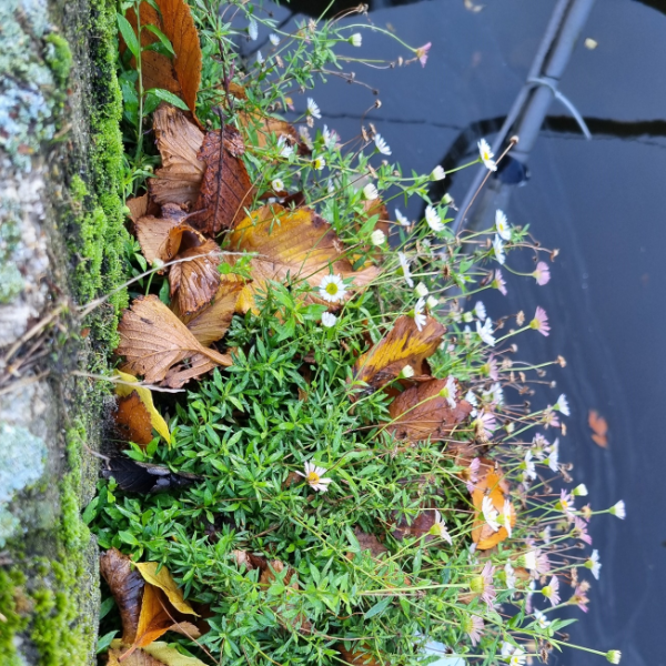 The mortar facilitates the (spontaneous) growth of wall flora in the brickwork joints (see image). The design also takes account of the correct moisture levels for wall flora. The porosity of the masonry and the water level play an important role.