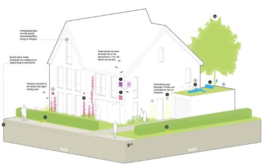 The Municipality’s ambition to make Wilderszijde a nature-inclusive district has been embraced by developer BBGZ, a collaboration between Batenburg Bouw & Ontwikkeling, BPD (Bouwfonds Property Development), and Zondag Ontwikkeling. This has made it possible for climate adaptation and biodiversity measures to not only be applied in public spaces but also in private buildings and gardens.