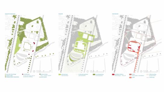 In this way, the landscape plan provides substantiation and development of the design of the grounds in relation to the new building and integrates the various facilities into the landscape. With particular emphasis on the unique morphological location of the area on the edge of the Beiler Es.