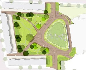 The Multifunctional Design principle stimulates the search for multiple functions and a maximum combination of functions that can best be served by the design. The crux is to surprise stakeholders by providing extra functionality and therefore greater added social value through a relatively small design modification. The project takes into account the increasing severity of weather extremes. In the event of heavy rain, the water is captured in the lower-lying field in the centre of the plaza. This wadi (water discharge, drainage and infiltration) forms an important part of the provisional design.
