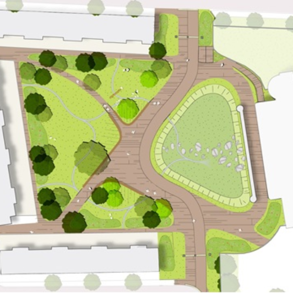 The desire to transform Bisschop Bottemanneplein into a small scale urban park was the starting point. During a participatory evening involving nearby residents, three concepts were presented, each with a different design for the terrain. The concepts included space for vegetable gardens, events or a meeting place with a focus on climate change adaptation, respectively.