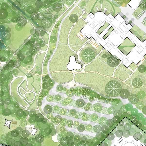 Enschede Crematorium is an important and valued location in Twente for saying goodbye to loved ones. The crematorium is beautifully situated in the countryside. Witteveen+Bos has designed a master plan for the site with the following core values: further developing the existing memorial park and creating conditions for sustainability.