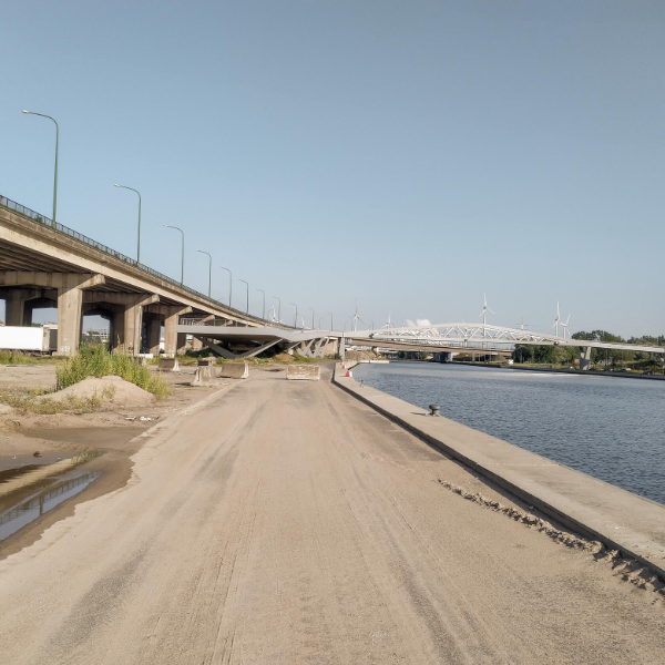 During the construction of the Oosterweel Link, part of the Lobroek Dock was occupied by road infrastructure. As a potential spreading risk (impact on the Albert Canal) could not be excluded, a soil remediation of the mixed contamination in the sediment was carried out. The contamination consisted of mineral oil, heavy metals and polycyclic aromatic hydrocarbons (PAHs).