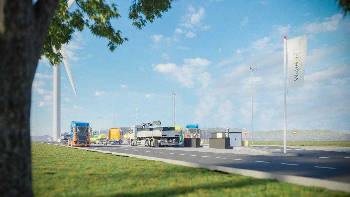 The ultra-modern charging plaza delivers a total capacity of 5 megawatts, with the possibility of increasing this to 10. The plaza has 39 charging poles, each one offering a maximum charging speed of 350 kW. Electric trucks and heavy equipment are able to fast-charge or change battery packs at the plaza. The WattHub charging plaza was realised near Solar farm AVRI (9.3 MWp) and Wind farm AVRI (10.8 MW) of Burgerwindcoöperatie West-Betuwe (Betuwewind) which will supply the charging plaza with locally generated renewable electricity.