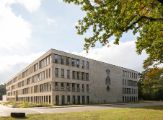 The building has a solid appearance and is also robust in a practical sense, thanks to easy-to-maintain materials that do not visibly age or become dirty. The soft natural sand, green and white tones of the façades blend naturally into the natural image of the forest edge in all seasons.