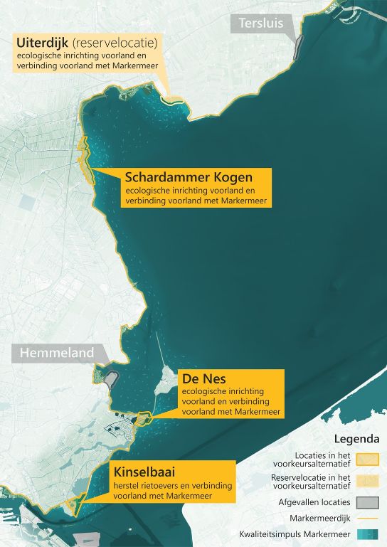 The seven promising locations are situated along the Markermeer coast between Enkhuizen and Amsterdam. In an integrated process involving ecologists, site managers and professional stakeholders, Witteveen+Bos collaborated with BWZ Ingenieursdiensten to draw up the designs for the various locations.