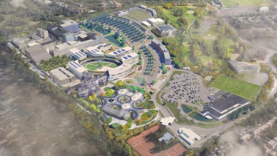 The design concept also makes links with major global themes, such as caring for the climate and environment. A park will be built on the campus that enables natural water storage and other forms of climate adaptation, with the design also seeking to maximise energy savings, reduce its carbon footprint, and utilise renewable energy sources.