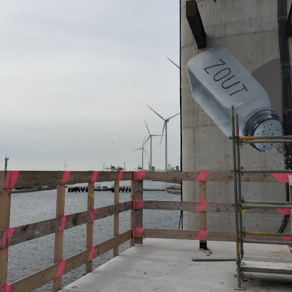 In October 2022, following preparatory work, the contractor started construction of the salt dam. In March 2024, the 27-metre-high pillars were installed in the deepened canal. The pillars were hoisted into place by Europe’s second-largest crane vessel, the Gulliver. In the summer of 2024, large concrete walls will be mounted to the pillars, and abutments and a pocket door will be installed in the pillars’ upper part. The salt dam is expected to be operational by the end of 2024.